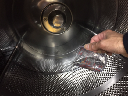 ドライクリーニングの溶剤に、水溶性の汚れを落とす効果のある洗剤を投入し、スッキリ 仕上がります。